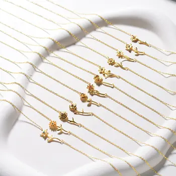 Dainty Birth Flower Necklace | 18K Gold Plated Brass Birth Month Flower Pendant Necklace | Personalized Jewelry for Women