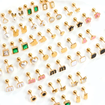 Gold PVD-Plated Stainless Steel Stud Earrings | Zircon Accents | Moon, Heart, Star Designs | Hypoallergenic Trendy Jewelry