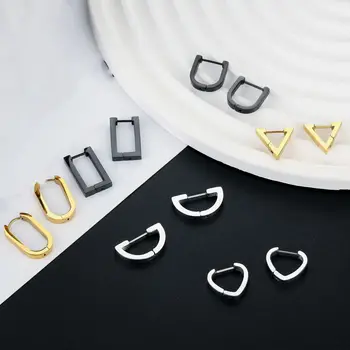 PVD Gold Stainless Steel Geometric Huggie Hoop Earrings for Men & Women Hexagon Star Triangle Heart Waterproof & Hypoallergenic