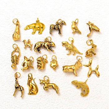 3D Animal Kingdom | 18K PVD Gold Stainless Steel Pendants | Dog Cat Mermaid Lion Dolphin Giraffe Horse Charms for Jewelry Making