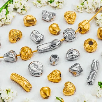 Baroque Style Waterproof Stainless Steel Spacer Beads Gold Plated Multi Designs Irregular Beads Charms for DIY Jewelry Making