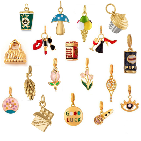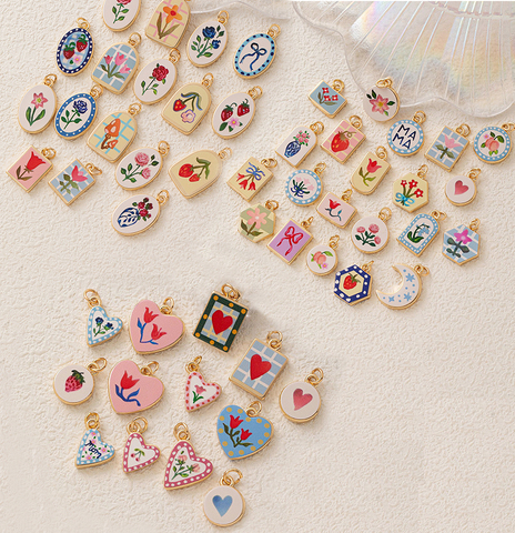 Sơn Vườn | 18K Vàng Mạ Brass Mặt Dây Chuyền Cho Tự Làm Đồ Trang Sức Làm | 100 + Thiết Kế của Hand Painted Thiết Kế Charms