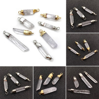 Tinh thể nguyên điểm mặt dây chuyền | thạch anh tự nhiên thanh quyến rũ đôi bảo lãnh kết nối đối với trang sức làm Electroplated Vàng & Bạc cạnh
