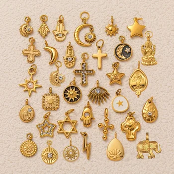 • Zodiac, Celestial & Spiritual Symbols | 18K PVD Gold Stainless Steel Charms | Star, Moon, Sun, Hamsa & Evil Eye Pendants for DIY