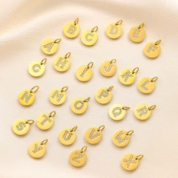 Pave Disc Alphabet Letter Charms | 18K PVD Gold Plated Stainless Steel Zircon Initial Pendants for Jewelry Making | Waterproof