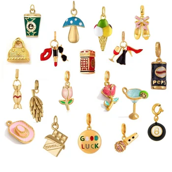 Vintage Everyday Miniatures | 18K PVD Gold Plated Hand Painted Charms Enamel Pendants | Waterproof Hypoallergenic & Tarnish Free