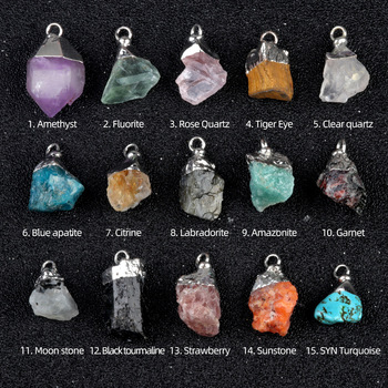 Ciondoli in pietra preziosa grezza | Colori misti assortiti ciondoli in pietra irregolare natura ruvida con cappuccio in argento per la creazione di gioielli fai da te