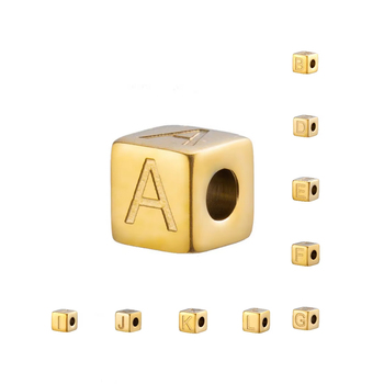 Letter Cube Bead | 5MM Alphabet Initial Spacer Beads for DIY Jewelry Making Bracelets & Necklaces | 18K PVD Gold Stainless Steel