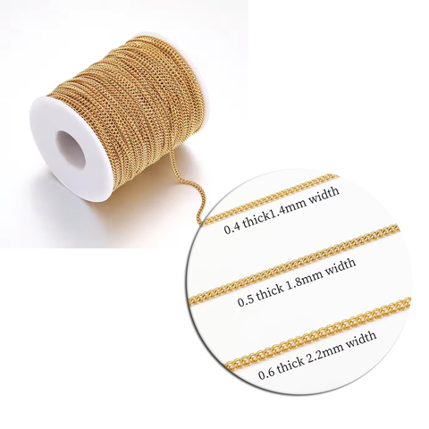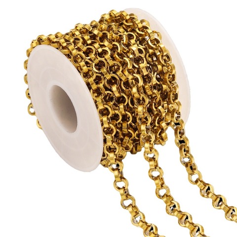 DIY 전기 분해 트리플 체인 미터 빛나는 타원형 체인 스테인레스 스틸 수제 두꺼운 O 체인 목걸이 롤 보석 만들기