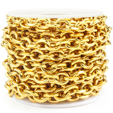 PVD 금도금 스테인레스 스틸 타원형 링크 체인 | 보석 제작용 미터로 판매되는 긴 십자 용접 원형 와이어 종이 클립 체인