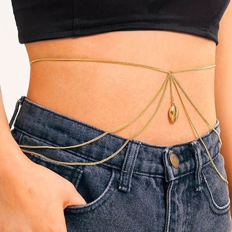 שרשרת מותן שכבה עם תליון מעטפת לנשים | boho החוף שרשרת הגוף | boho זהב מצופה שמלות בטן סקסיות מתכווננות לקיץ