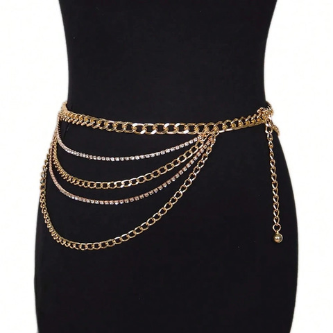 Rhinestone שרשרת ירך מרובדת עבור נשים | זהב מעור פלדה מגורדת צ 'אנל-זהב בטן
