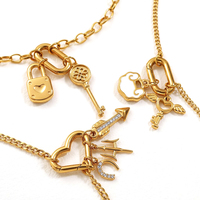 Aventuras doradas | Encantos de viaje y protección de acero inoxidable chapado en oro PVD de 18 quilates | Colgantes de cerradura de flecha de corazón con llave de avión