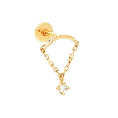Pendiente de cartílago con parte posterior plana de hilo interno de Plata de Ley 925 | Pendiente colgante de cadena de oro con gota de CZ para Piercing Tragus Helix