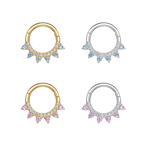 Anillo de Nariz de aro Clicker de Plata de Ley 925 para perforación de cartílago y tabique | Acentos de lágrima CZ en color dorado y plateado