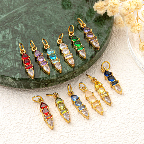 Legado Birthstone Bar Pingentes | 18k banhado a ouro latão Baguette Zircon encantos para fazer jóias DIY