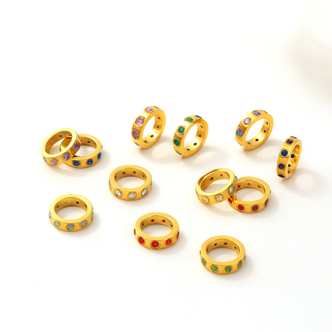 Petite Birthstone Rondelle Charme Em Massa 18K PVD Banhado A Ouro Aço Inoxidável Colorido Zircon Pingentes para Fazer Jóias DIY