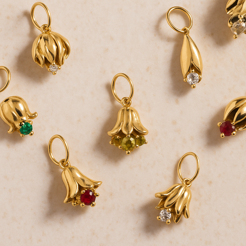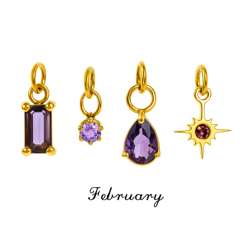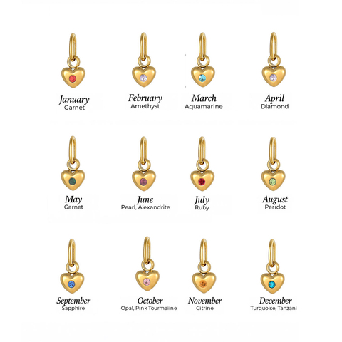 4 pcs/set Birthstone Encantos | Aço inoxidável PVD banhado a ouro mensal Birthstone Pingentes | Durável, impermeável e hipoalergênico