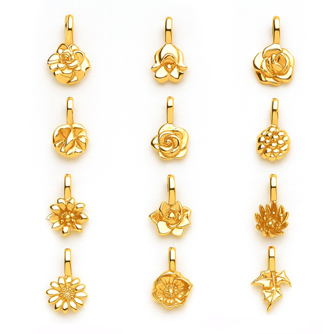 Encantos da flor do nascimento dourado | 18k banhado a ouro bronze nascimento mês pingentes de flores para DIY pulseira, colar & fazer jóias