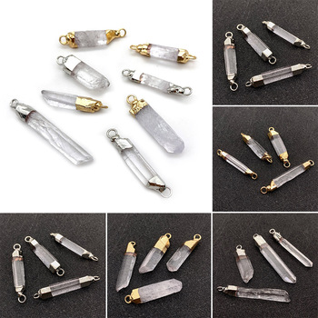Ham kristal nokta kolye | Doğal kuvars sopa Charm çift halka konnektörü takı yapımı için elektroliz altın ve gümüş kenar