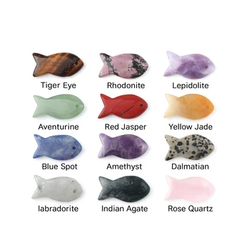 Natural Gemstone Fish Pendant | Mixed Healing Stone Pendants for Jewelry Making | Tiger Eye, Amethyst, Aventurine, Rose Quartz