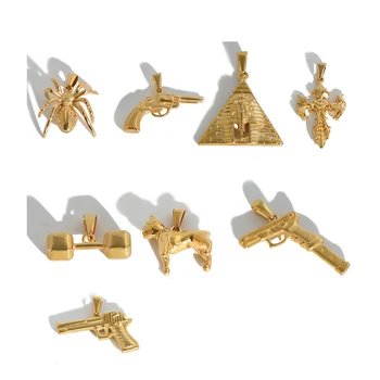 Gilded Power | 18K PVD Gold Plated Stainless Steel Pendants | Gun, Spider, Dog, Pyramid & Dumbbell Charms for Jewelry Making