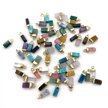 Natural Stone Bar Charms | Assorted Gemstone Pendant with Golden Cap for DIY Jewelry Making | Amethyst, Rose Quartz, Turquoise